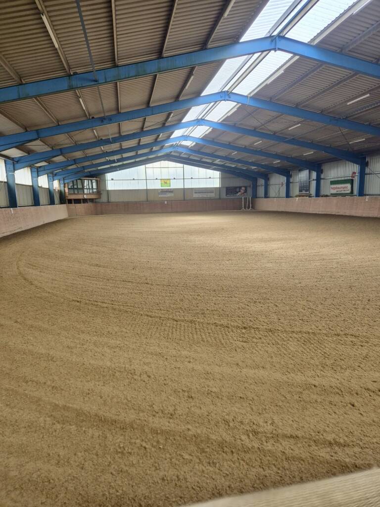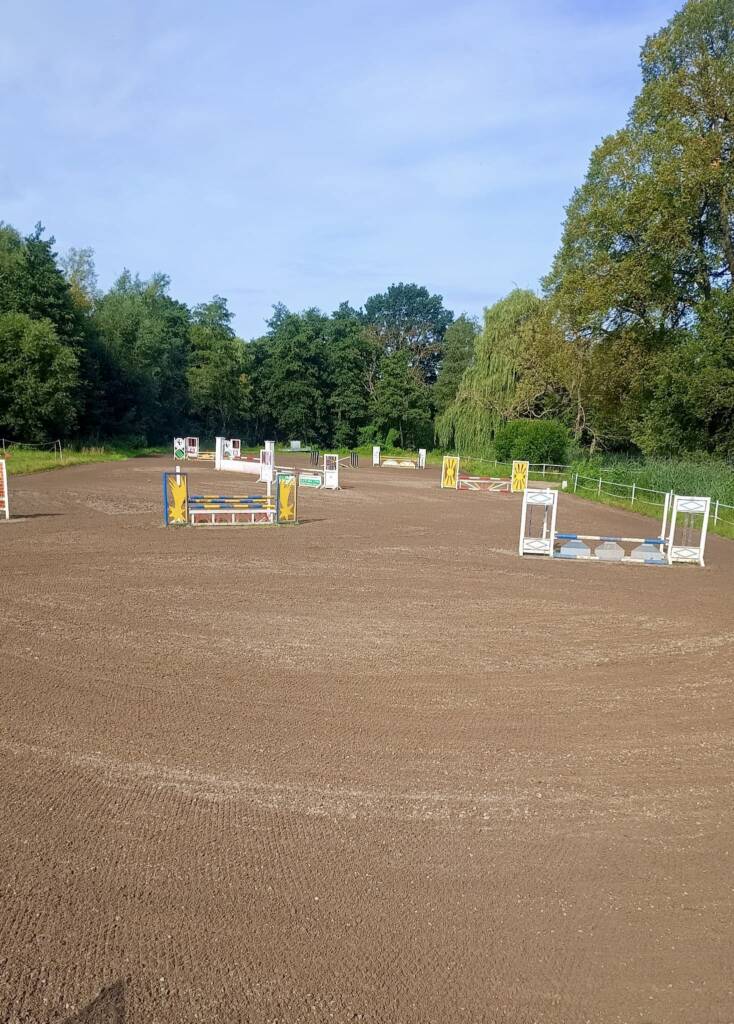 Dressurturnier: 1 Arbeitsplatz (Sand, ca. 20×40), 1 Reithalle (zum abreiten, 20×40), 1 Turnierplatz (Sand, bis20x60)
